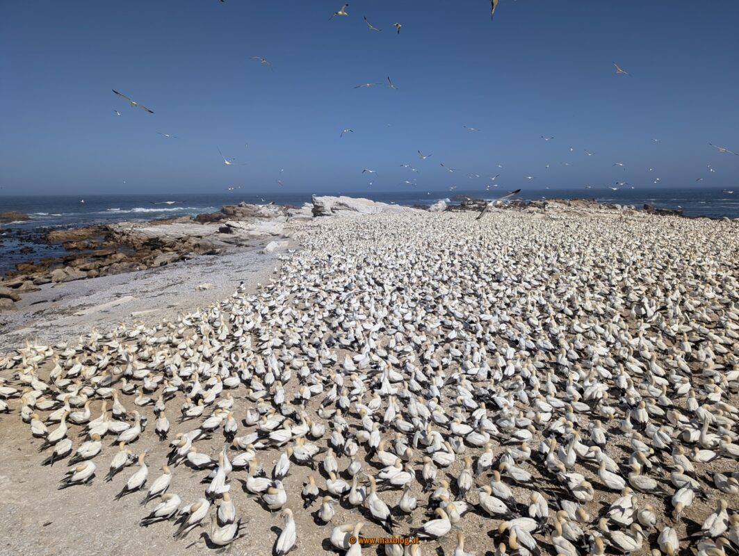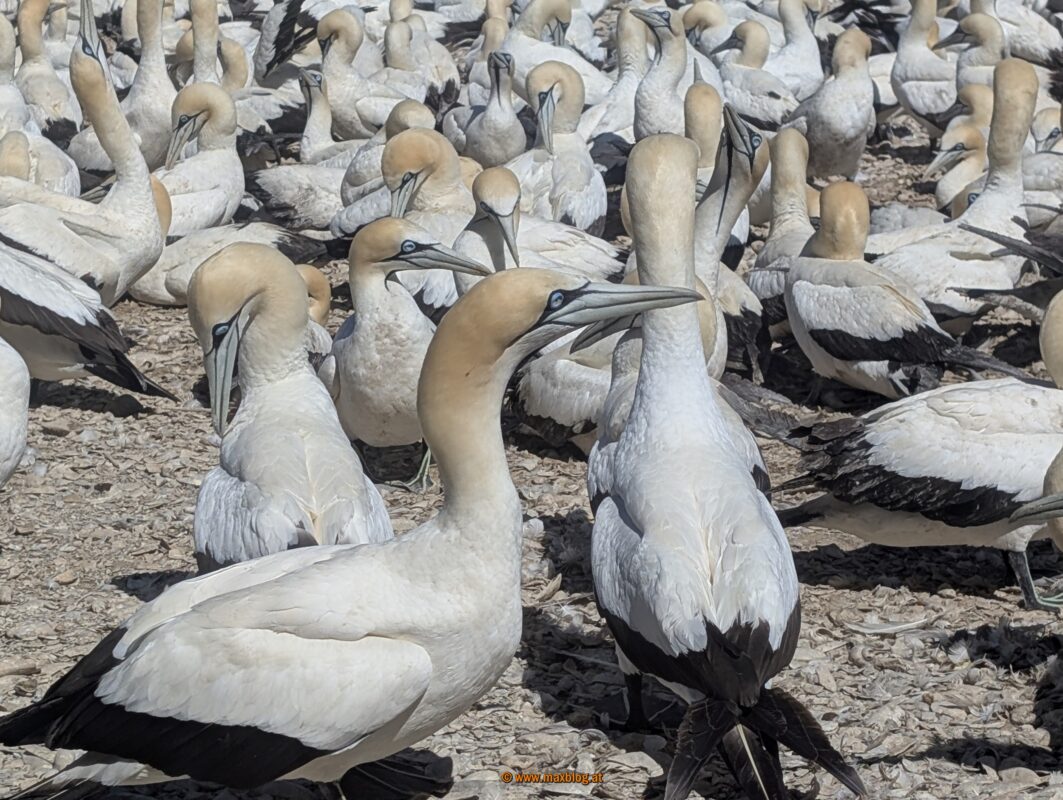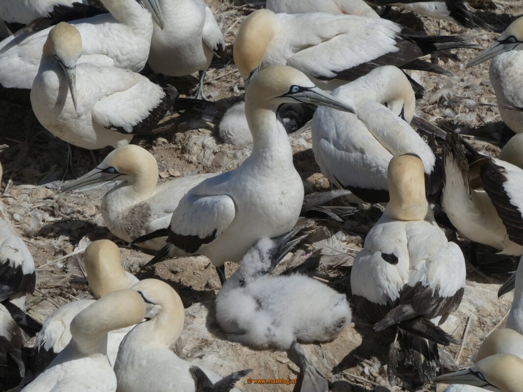 Die kleine, dem Ort vorgelagerte Halbinsel ist von diesen Vögeln fast völlig in Beschlag genommen und es ist gerade Brutsaison.
