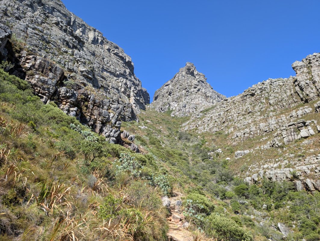 Um unsere Beine daran zu erinnern, dass es auch noch eine dritte, vertikale Raumdimension gibt, wandern wir über die Platteklip-Schlucht hinauf auf den Tafelberg. Keine bergsteigerische Höchstleistung aber man wird bescheiden.