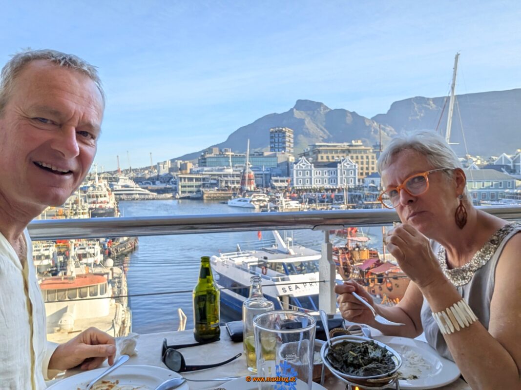 Kulinarisch bietet Kapstadt als multikultureller Hotspot eine enorme Auswahl an ausgezeichneten Restaurants. Wir haben jeden Abend die Qual der Wahl, meist wählen wir Meeresfrüchte. Herrlich frisch und preisgünstig.