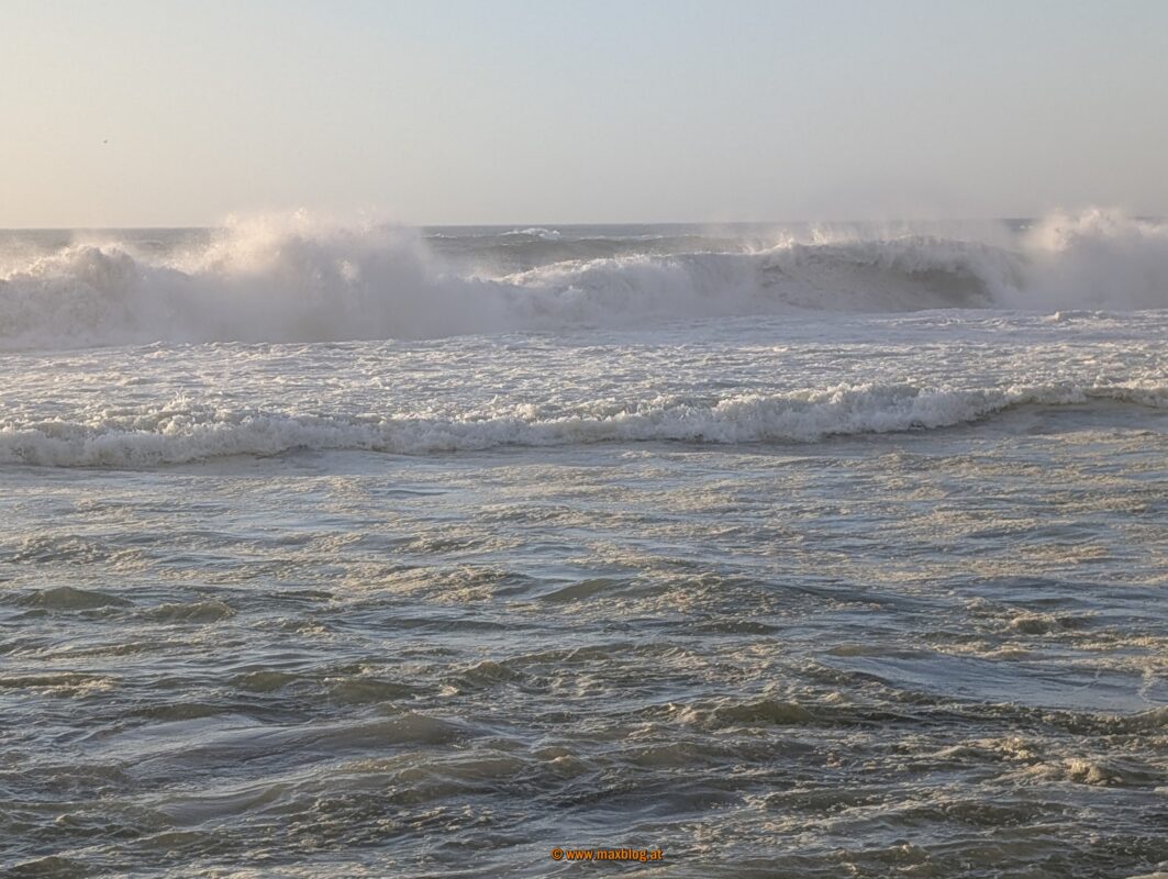 … und übernachten dort oberhalb des enorm breiten Strandes, wo der Atlantik wieder mal zeigt was er so kann.