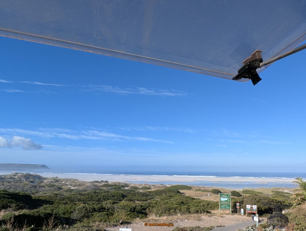 Noch ein paar Dutzend Kilometer, dann lass‘ ich es mit dem Fahren für heute gut sein. Mit Blick auf den Atlantik und inmitten von salztolerierenden bodennahen Sukkulenten finde ich uns ein sehr ruhiges Plätzchen für die Nacht. Es kühlt auf 14 Grad ab.