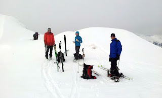 Wir fahren den Gipfelhang einmal ab und gehen dann nochmal rauf, bevor wir endgültig abfahren, denn hier hat’s wirklich wunderbaren Schnee!