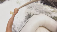 Der große Tag! Am Morgen wird die ganze Truppe (wir sind 3 Boote mit je 7-8 Leuten) erstmal eingeschult und dann geht’s ans Ausrüstungs-Ausfassen. Die Schwimmwesten sind hier nochmal mit extra Auftriebskörpern verstärkt …