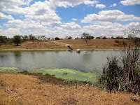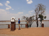 Mandavu ist ein richtig großer Stausee, nicht nur ein Wasserloch. Hier hätten wir nochmal übernachten können, aber der Platz scheint uns gegenüber den bisherigen Camps unattraktiv weil die Tiere ja über das ganze Seeufer verteilt zum Trinken kommen können. Ausserdem fehlt hier der Flair vollkommen.