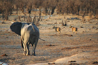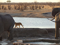 Die Nacht wird neben derjenigen in Chitake Springs eine der lautesten bisher: Löwengebrüll, Hyänengeschrei, Hippogrunzen und Elefantengrummeln – alles ist dabei. Sogar ich werde davon einige Male wach, obwohl ich normalerweise wie ein Stein schlafe selbst wenn ein Löwe neben dem Auto brüllt (wobei es ja meist eher eine Art Stöhnen als ein Brüllen ist).