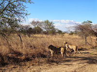 Nachmittags stehen wir dann ganz kribbelig beim Treffpunkt für den Lion Walk. Ausser uns sind noch 4 europäische Volunteers mit von der Partie, die hier im Park beim Lion Rehabilitation and Release into the Wild Program arbeiten dürfen (und dafür bezahlen müssen).