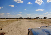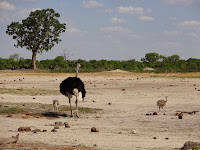 Zum Trost dafür können wir neben den allgegenwärtigen Elefanten einen unserer Lieblingsvögel beobachten: den großen Sekretär (ein Greifvogel dessen Lieblingsnahrung Schlangen sind. Bei der Jagd rennen sie über den Boden und treiben mit lautem Flügelschlag Kleintiere und Schlangen auf, welche daraufhin im Zickzacklauf gejagt werden).