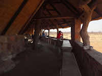 Diesmal haben Heidi und ich das „Camp“ samt Plattform ganz für uns alleine und in der Zwischenzeit wurde auch der damals völlig desolate Sanitärblock erneuert. Was allerdings nicht heißt, dass so Dinge wie der Duschabfluß funktionieren würden – aber immerhin haben wir eine Dusche und das ist hier, mitten in der Wildnis und etwa 100m von einem schlammigen aber von Tieren gut besuchten Wasserloch entfernt keine Selbstverständlichkeit.