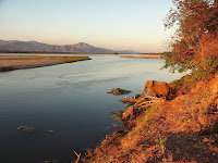 Nachmittags räumen wir auf (während wir unterwegs waren haben Affen unsere Campsite geplündert) fahren wir dann mit dem Auto ein wenig am Sambesi entlang flußabwärts, zur Mündung des Mana River.