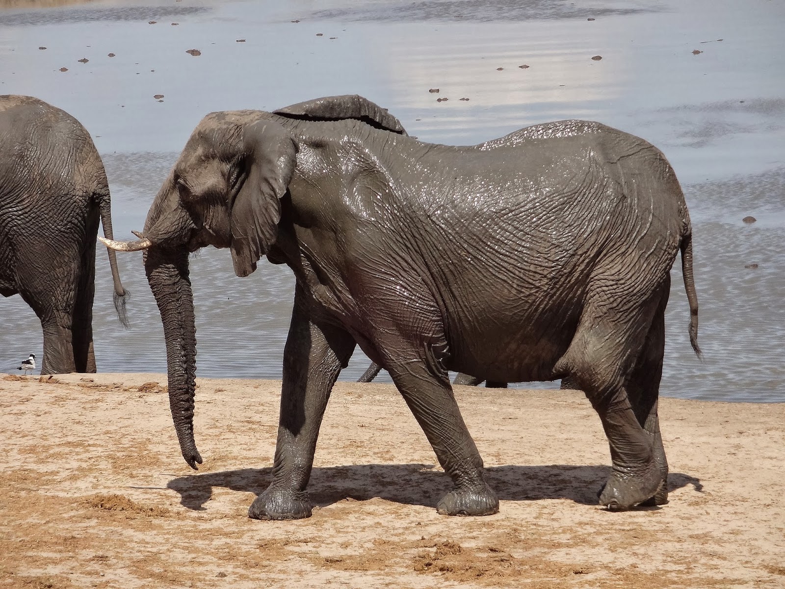 Zum Trost dafür können wir neben den allgegenwärtigen Elefanten einen unserer Lieblingsvögel beobachten: den großen Sekretär (ein Greifvogel dessen Lieblingsnahrung Schlangen sind. Bei der Jagd rennen sie über den Boden und treiben mit lautem Flügelschlag Kleintiere und Schlangen auf, welche daraufhin im Zickzacklauf gejagt werden).