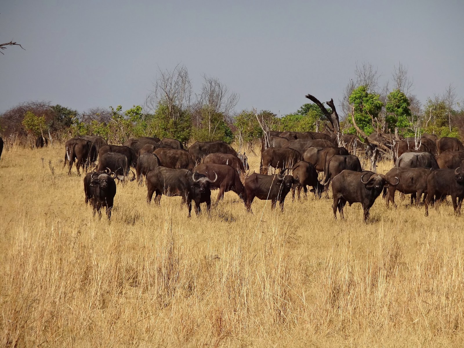 Als wir ankommen, trabt gleich mal eine Büffelherde heran …