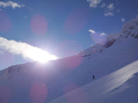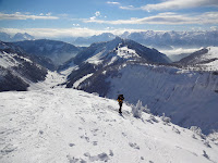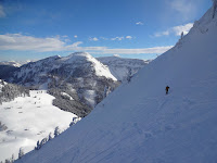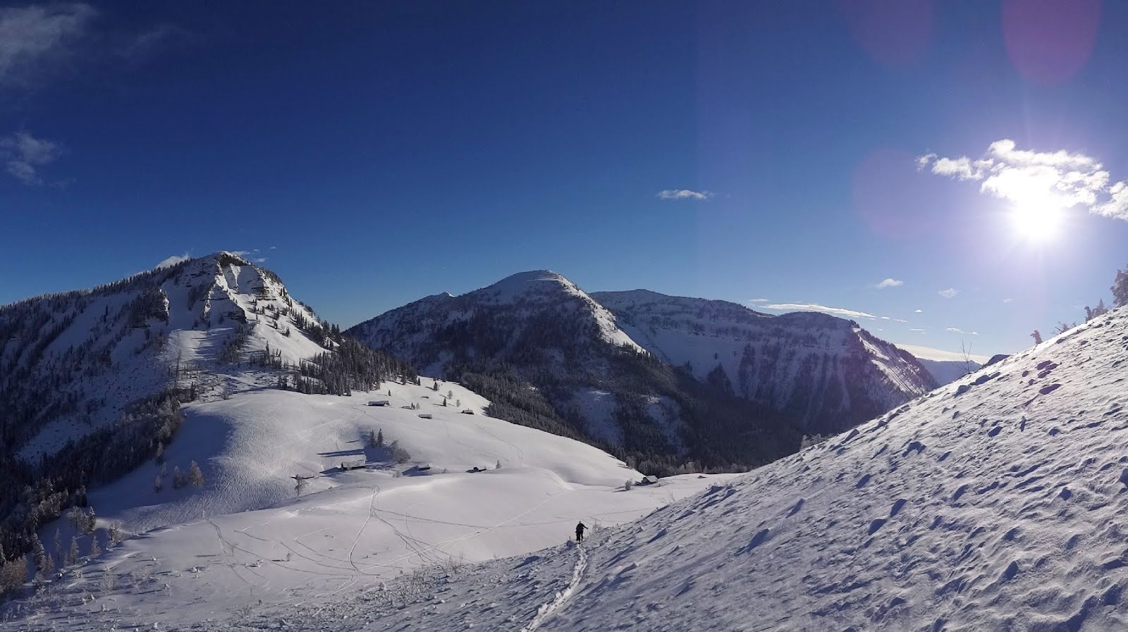 Das Gennerhorn passt genau für heute: ein kurzer, aber knackiger Ausflug in die Osterhorngruppe mit herrlichstem Wetter (natürlich zieht’s zu, sobald wir – beim Auto zurück – wieder abschnallen :-).