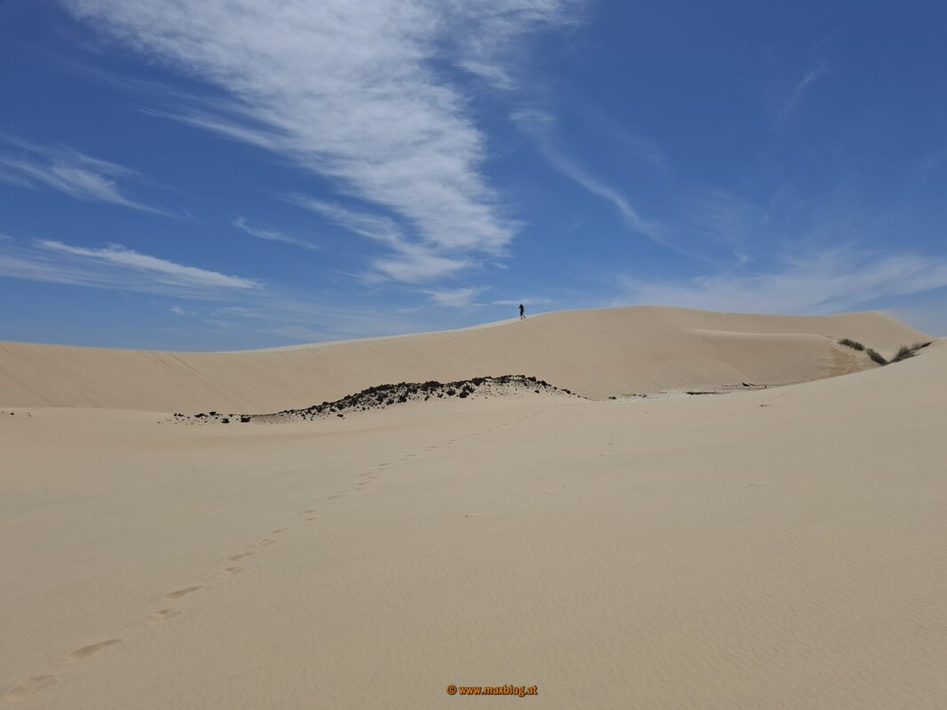Der Wind ist auf den Dünen enorm stark, in den Ohren und zwischen den Zähnen finden sich noch Stunden danach Sandkörner.