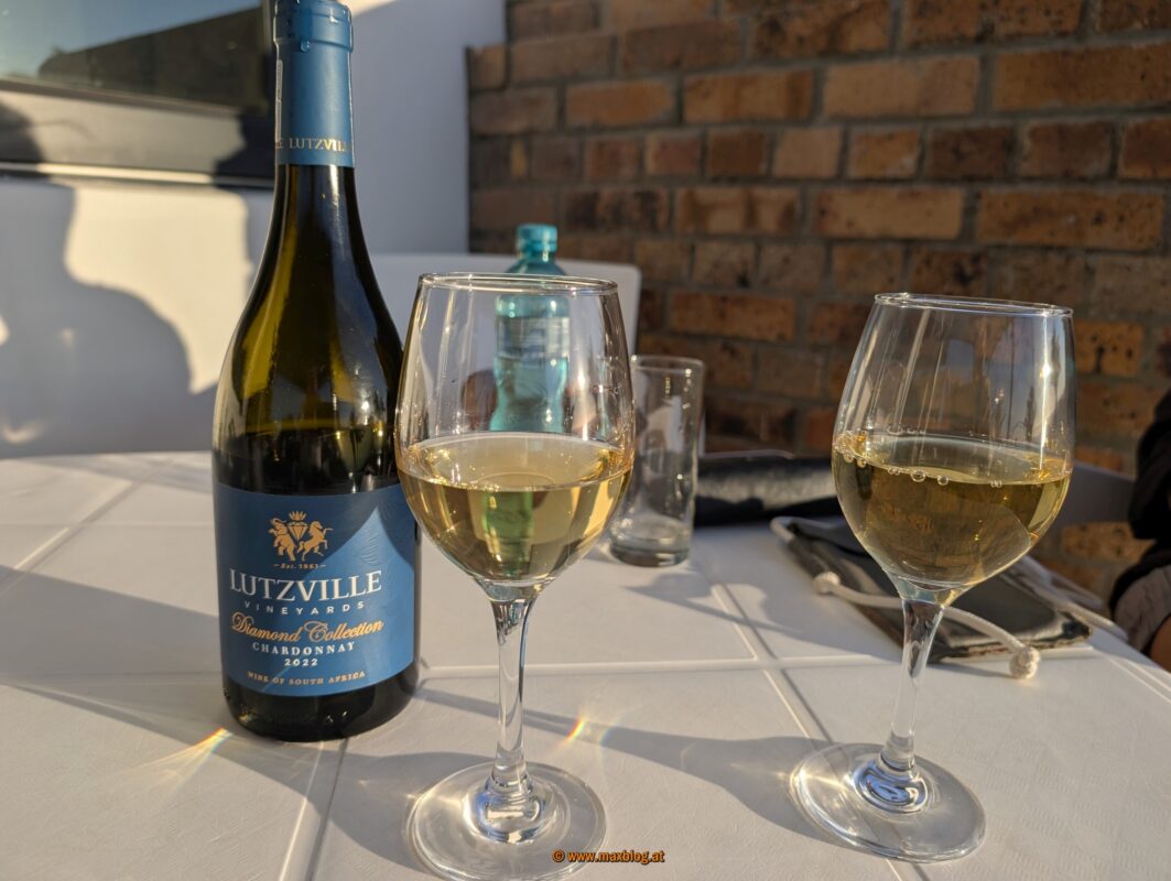 In einem Restaurant oberhalb des Strandes des kleinen Fischerdorfes Doringbaai gibt es „nur“ Fish & Chips. Das klingt nicht großartig, ist aber eine Riesenportion herrlich saftiger Kap-Seehecht und der hiesige trockene Chardonnay passt ausgezeichnet dazu.