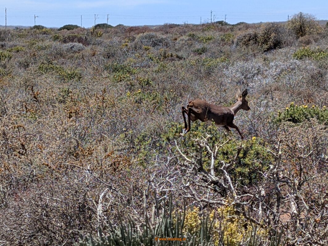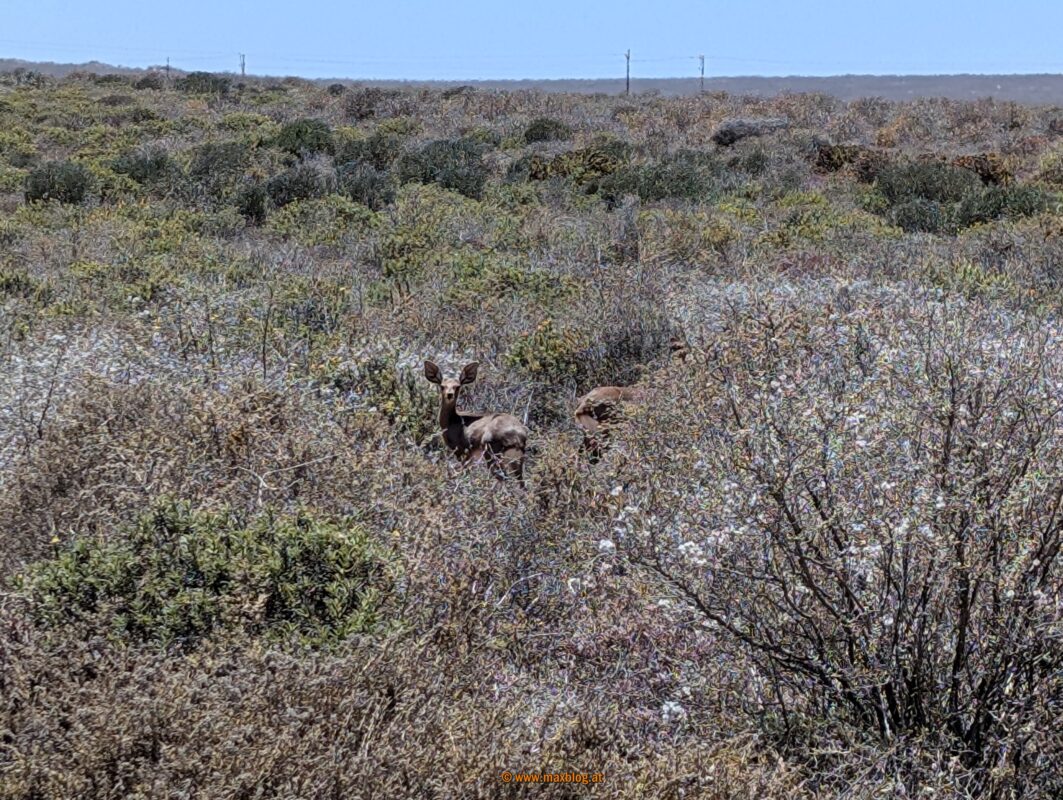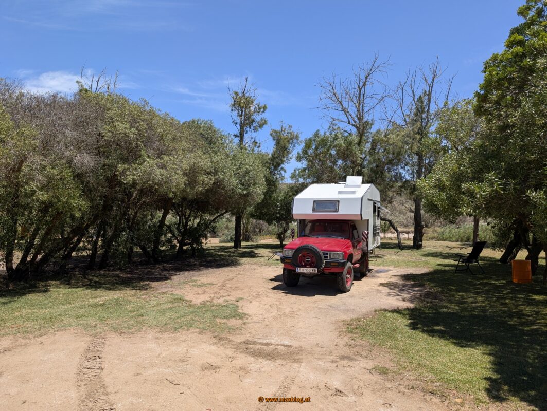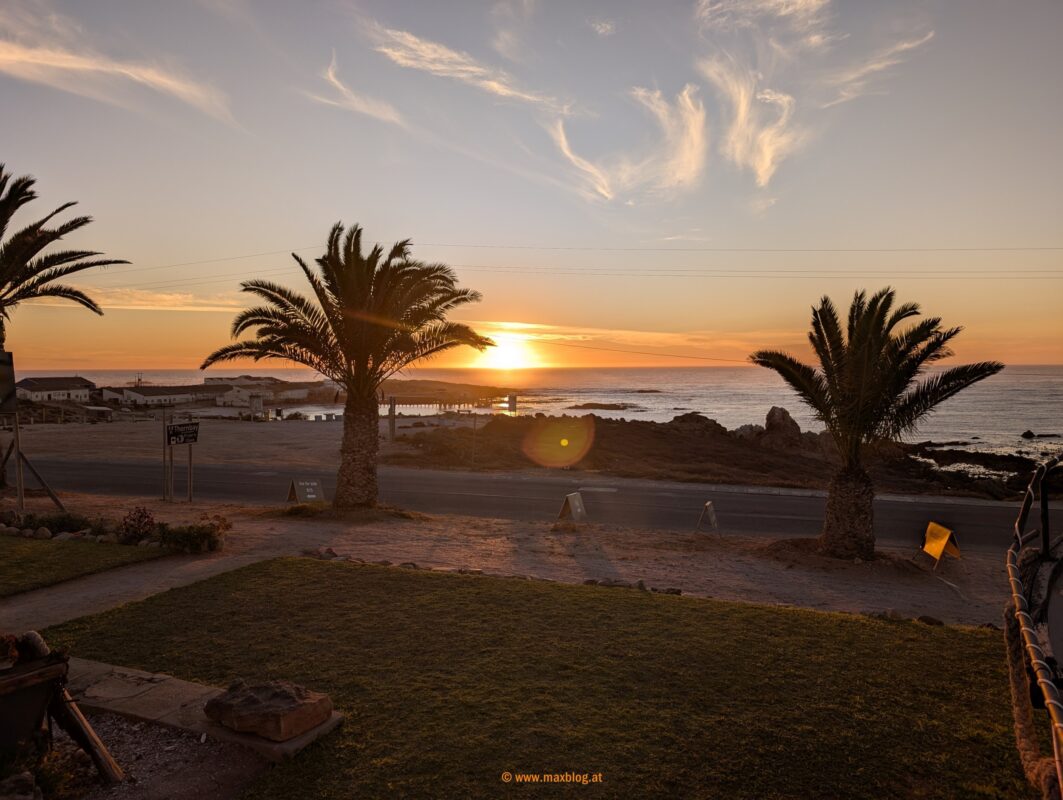 Noch ein paar Dutzend Kilometer, dann lass‘ ich es mit dem Fahren für heute gut sein. Mit Blick auf den Atlantik und inmitten von salztolerierenden bodennahen Sukkulenten finde ich uns ein sehr ruhiges Plätzchen für die Nacht. Es kühlt auf 14 Grad ab.