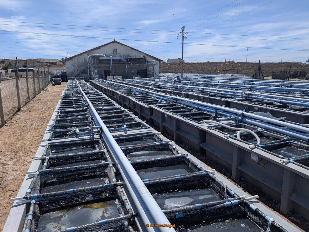 Zurück im Fischerdorf brunchen wir in einem Restaurant direkt am Hafen und sehen nebenan einerseits, wie Seeohren (engl. Abalones, eine beliebte Schnecken-Köstlichkeit) gezüchtet werden und andererseits, wie der Seetang geerntet wird um damit die Seeohren zu füttern.