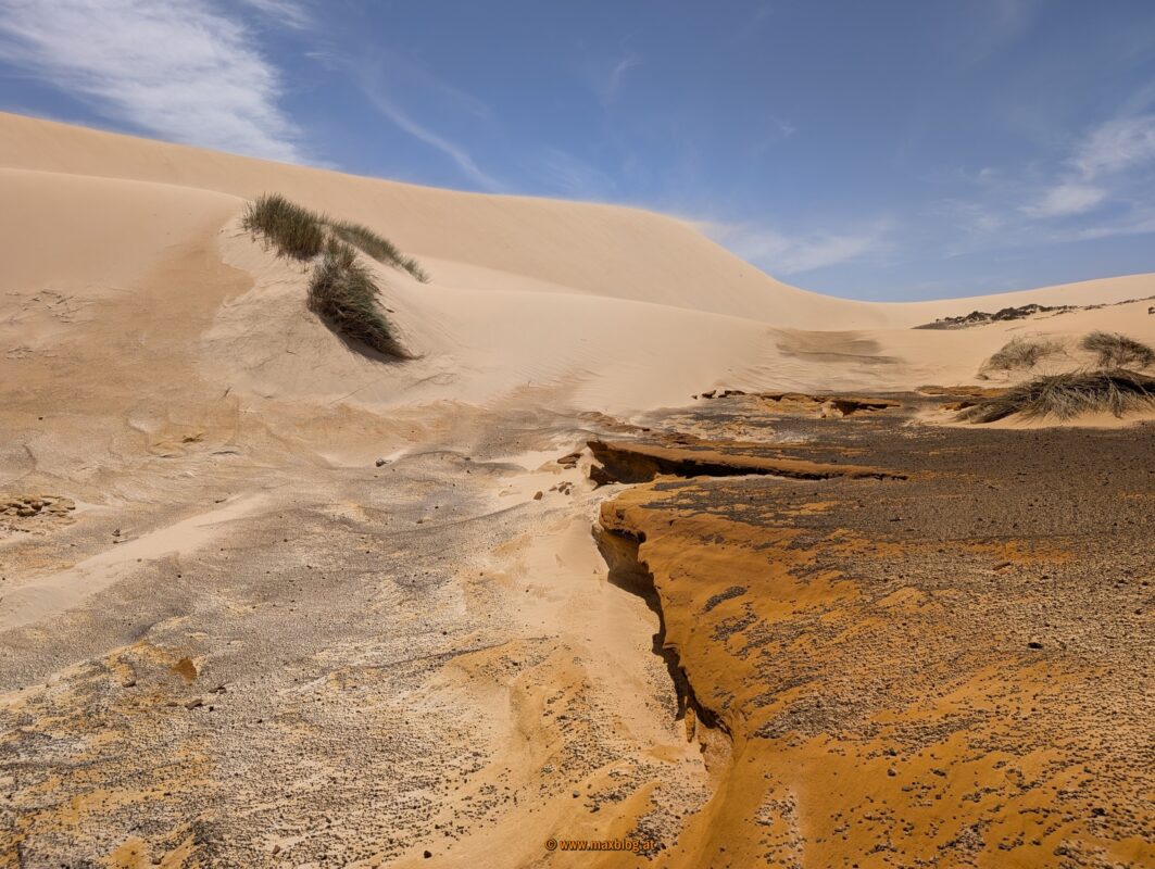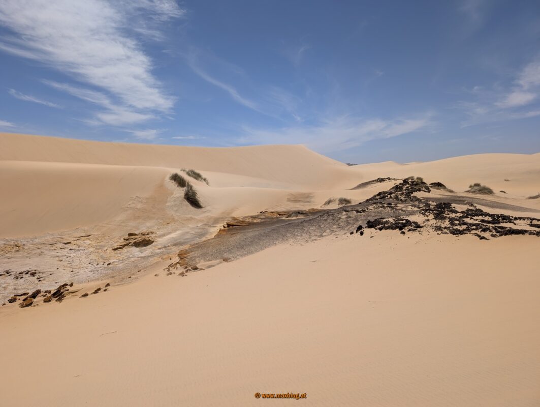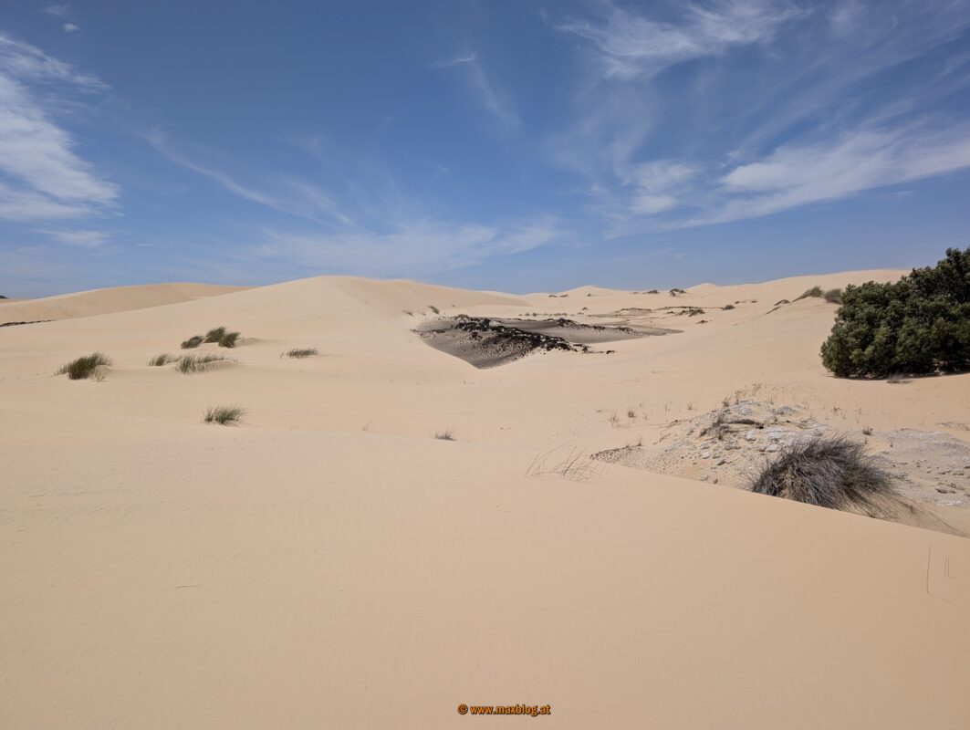 Ich entdecke dann von der Straße aus ein Dünengebiet. Weil der Reifendruck eh schon minimal ist, ist ein Abstecher dorthin für einen Sandfreak wie mich ein Muss.