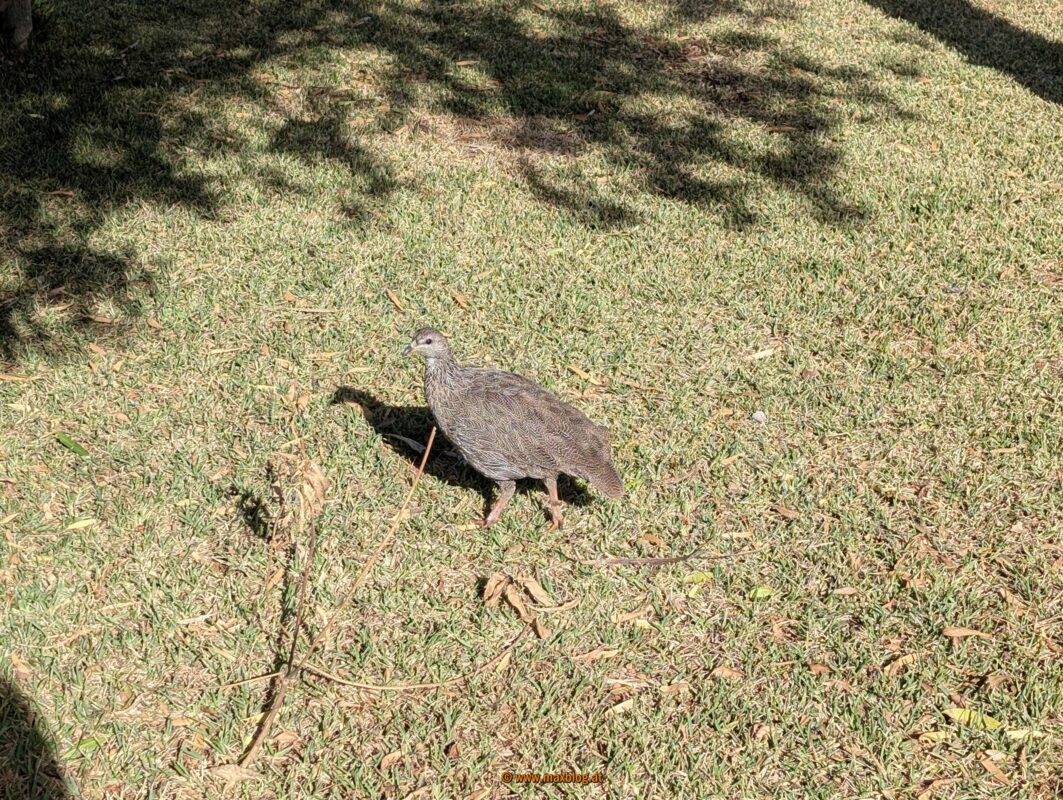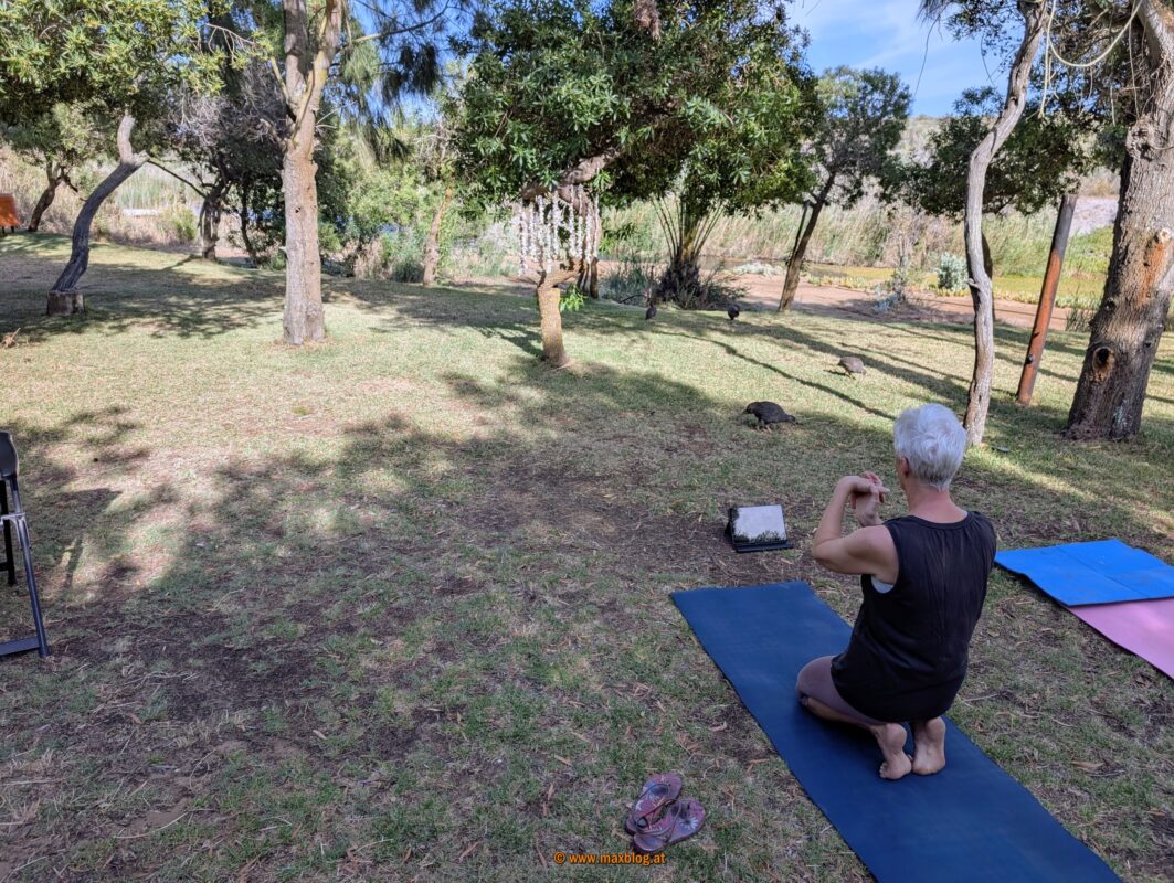 Viele recht zutrauliche Vögel leisten uns hier Gesellschaft, auch beim Yoga.