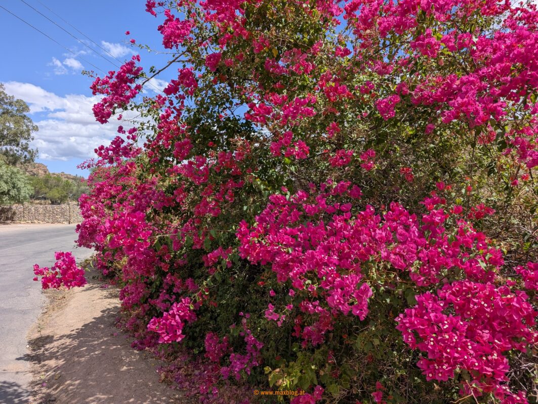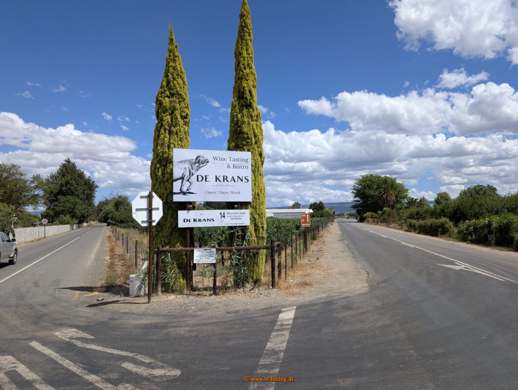 … fahre ich bei etwa 37°C noch bis in den kleinen Ort Calitzdorp. Hier nisten wir uns ausnahmsweise wieder mal auf einem sehr netten Campingplatz ein und chillen ein bisserl.